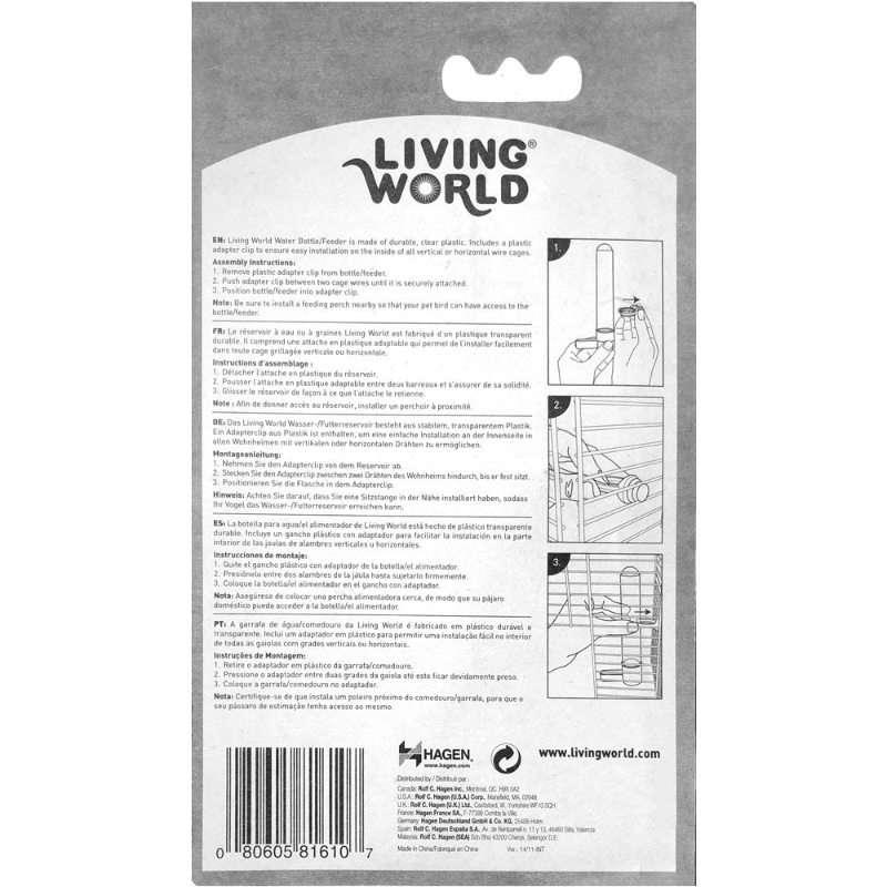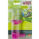 Este accesorio de Living World para aves viene con un clip de plástico que se adapta a la mayoría de las jaulas de aves de compañía. Llénalo con agua o comida y engánchalo por el interior de la jaula.