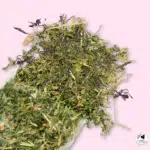 Mezcla de heno y hojas de hierbas (puedes escoger entre rosas, manzanilla y diente de león).
