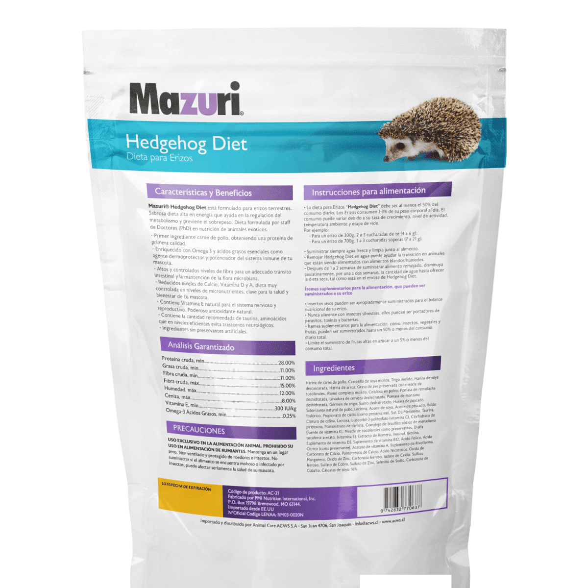 Alimento para Erizo de Tierra de Mazuri está diseñada por expertos en nutrición animal, ofreciendo una dieta de calidad superior que cubre todas las necesidades de tu erizo, desde su sistema digestivo hasta su bienestar general.
