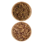 Tenebrios: 53% de proteína, 28% de grasa, 6% de fibra, 5% de agua.